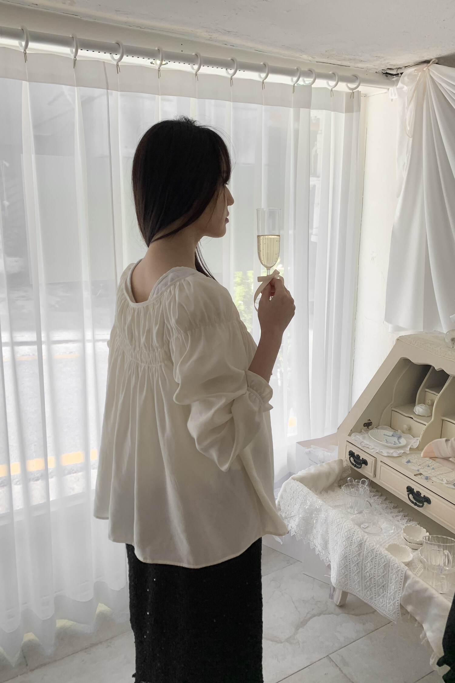 [Wooa Atelier] Sophie Smoke Shirring Blouse